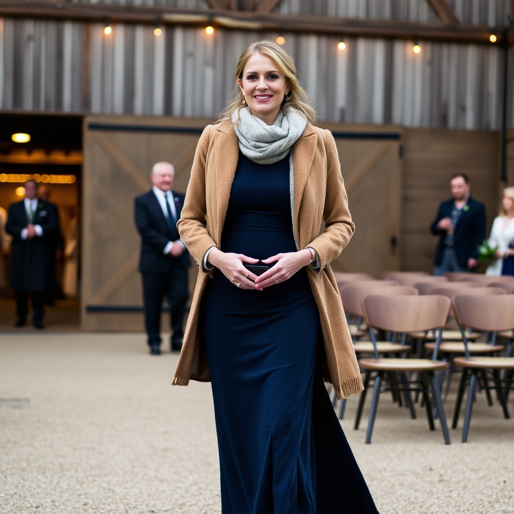 - A long-sleeved maxi dress or a tailored jumpsuit are smart choices.