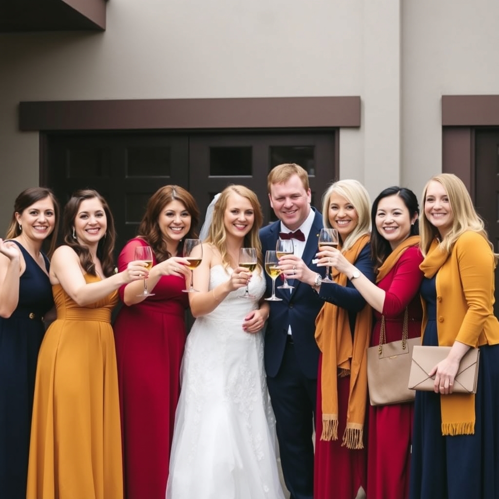- For evening receptions, pick darker hues and subtle metallics.